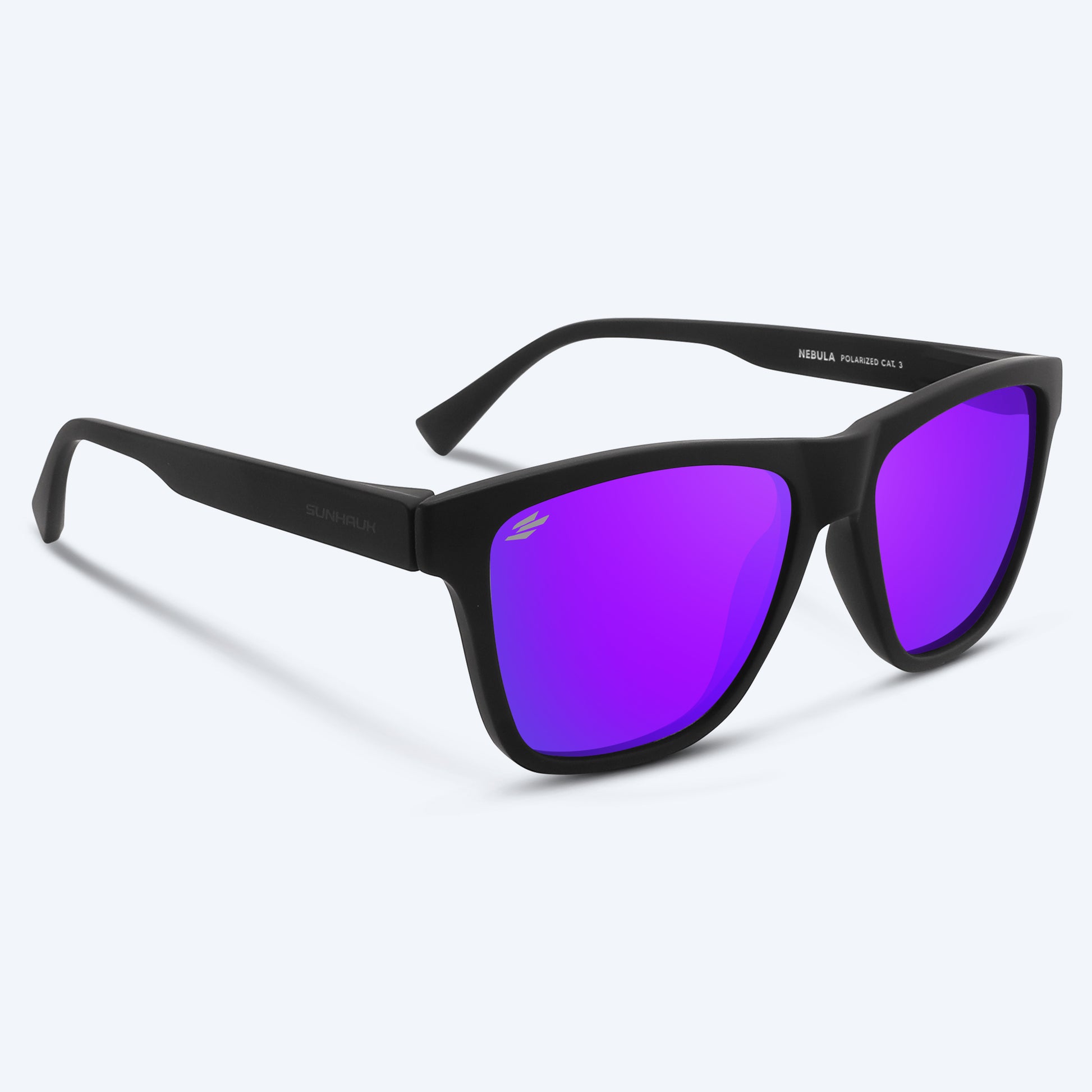 Venture into the extraordinary with Nebula, a bold statement of cosmic design and advanced functionality. The rubberized matte black frame and iridescent purple lenses exude futuristic elegance, making these sunglasses a standout accessory. Polarized UV400 lenses ensure superior glare reduction and eye protection, delivering crystal-clear vision in any light. Designed for a medium-to-large fit, Nebula offers all-day comfort with a durable, lightweight frame.